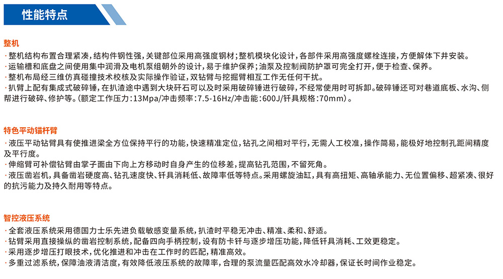 煤礦用巖巷鉆裝機組(簡稱“鉆裝機”)是一種集鑿巖與裝載兩種功能于一體的高效連續(xù)作業(yè)鉆裝機組。主要用于煤礦、引水洞以及其它工程巷道中的掘進(jìn)作業(yè)。提高了掘進(jìn)速度,降低了工人的勞動強度,有效保障了掘進(jìn)施工作業(yè)的安全性,很好的實現(xiàn)了巖巷快速掘進(jìn)的機械化作業(yè)需求,同時解決了中小巷道多種設(shè)備錯車問題。