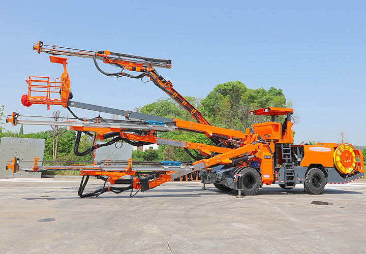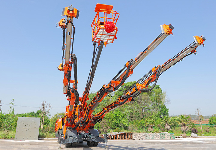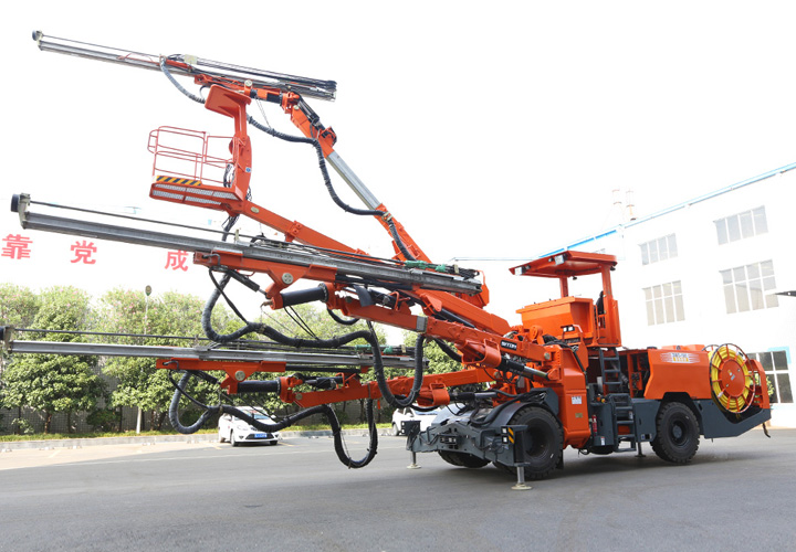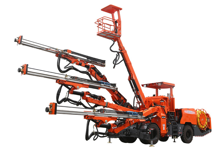 DW3-180三臂(液壓)鑿巖臺(tái)車是一款三臂鑿巖設(shè)備,采用三套鉆臂為獨(dú)立液壓系統(tǒng)控制,鉆臂可伸縮覆蓋面積廣,設(shè)有一套高空服務(wù)吊籃可為裝藥、排險(xiǎn)、掛網(wǎng)等輔助工作提供升降平臺(tái)。為高速高鐵、水利水電工程、以及國(guó)防等中大型隧道掘進(jìn)鉆孔作業(yè)而研發(fā)制造的鑿巖裝備,滿足鑿巖掘進(jìn)需要的各種炮孔、錨桿孔、小導(dǎo)管支護(hù)、注漿孔等;該機(jī)工作時(shí)采用全液壓驅(qū)動(dòng),電液比例閥控系統(tǒng)控制鉆臂鑿巖,動(dòng)作柔順定位迅速、鑿巖速度快,全實(shí)時(shí)液壓平動(dòng)式鉆臂使推進(jìn)梁全方位可保持平行,設(shè)有自動(dòng)防卡釬、鑿巖完畢停止沖擊、退桿等功能;柴油機(jī)供行走,四輪四驅(qū)、動(dòng)力強(qiáng)勁、轉(zhuǎn)場(chǎng)靈活,整機(jī)結(jié)構(gòu)布置緊湊、重心低、機(jī)動(dòng)靈活、系統(tǒng)穩(wěn)定,不僅提升安全保障和工作效率,也能降低勞動(dòng)者的工作強(qiáng)度。電腦自動(dòng)化控制系統(tǒng)高度精度的掌控鉆臂按預(yù)先設(shè)計(jì)好布孔圖有序一鍵完成自動(dòng)鉆孔,可精確自動(dòng)控制鉆孔孔位、推進(jìn)梁角度和孔深,同時(shí)顯示器精確顯示實(shí)時(shí)鉆孔情況。