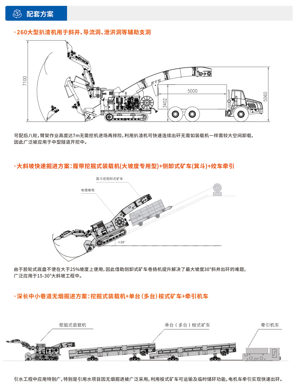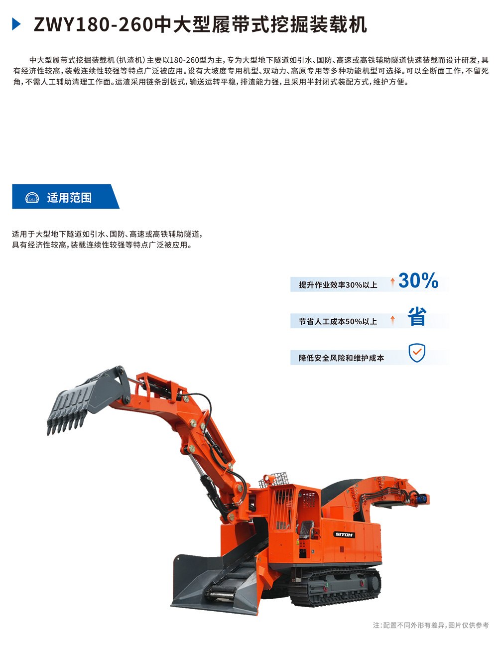 中?型履帶式挖掘裝載機(扒渣機)主要以180-260型為主,專為?型地下隧道如引?、國防、?速或?鐵輔助隧道快速裝載?設(shè)計研發(fā),具有經(jīng)濟性較?,裝載連續(xù)性較強等特點?泛被應(yīng)?。設(shè)有?坡度專?機型、雙動?、?原專?等多種功能機型可選擇??梢匀珨??作,不留死?,不需??輔助清理?作?。運渣采?鏈條刮板式,輸送運轉(zhuǎn)平穩(wěn),排渣能?強,且采?半封閉式裝配?式,維護?便。