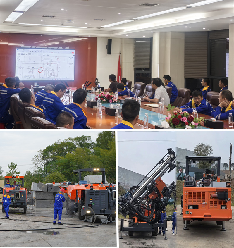 培訓(xùn)以“理論結(jié)合實(shí)踐”的模式開(kāi)展,針對(duì)江西鑫通礦用掘進(jìn)鉆車(chē)和礦用錨桿鉆車(chē)展開(kāi)教學(xué),理論課程涵蓋臺(tái)車(chē)的運(yùn)行原理、保養(yǎng)和維修知識(shí);設(shè)備實(shí)操通過(guò)結(jié)合模擬掌子面對(duì)眼、在巖石上進(jìn)行鉆孔等課程,為學(xué)員提升操作技能打下了堅(jiān)實(shí)的基礎(chǔ)。